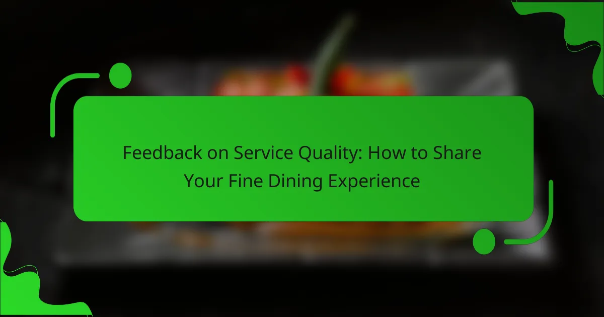Sharing your feedback on fine dining service quality is essential for both diners and restaurant owners. By utilizing online review platforms, direct communication, or social media, you can effectively convey your experience and insights. Focus on key aspects such as staff professionalism, timeliness, and food presentation to provide constructive feedback that can enhance future dining experiences.